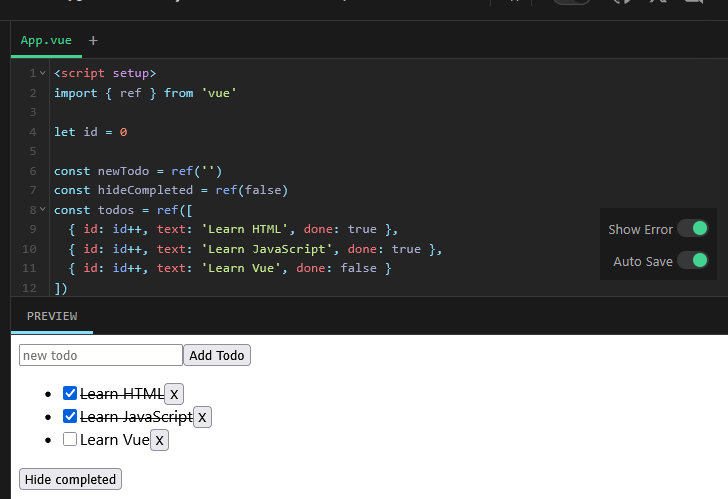 | Création d’un programme en Vue JS 2 | Aucune connaissance de ce framework | Apprentissage grace a ces sources : -> https://vuejs.org/tutorial/#step-1 -> https://v2.vuejs.org/ -> https://grafikart.fr/tutoriels/introduction-vuejs-2224#autoplay |