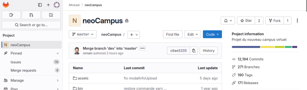 Nous réalisons des versions sur différentes branche grâce à gitlab.